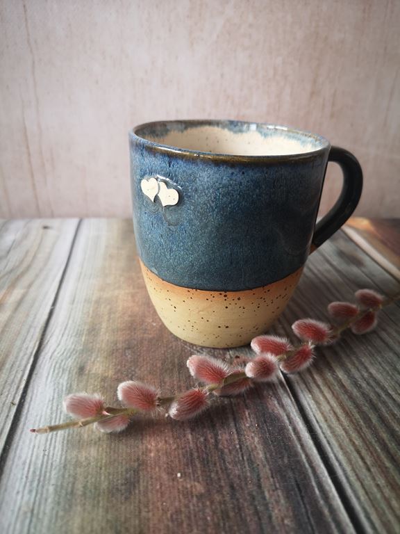 Kubek „Chmurne Niebo” został stworzony z myślą o miłośnikach naturalnych materiałów i oryginalnego wzornictwa. Ręcznie formowana glina, z widocznymi nakrapianiami, nadaje mu rustykalny, a jednocześnie elegancki charakter. Dwa złączone serduszka na uszku dodają mu romantycznego akcentu, czyniąc go idealnym prezentem dla bliskiej osoby.