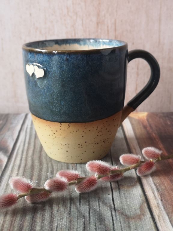 Kubek z uszkiem i serduszkami „Chmurne Niebo”