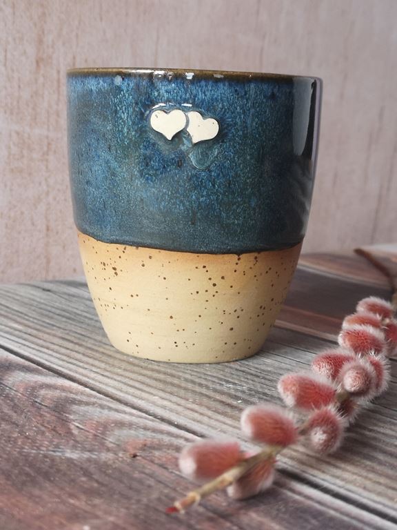 Kubeczek z uszkiem i motywem złączonych serduszek
